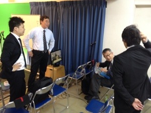 秋元牧師、到着です。 今日の奉仕について話をしています。