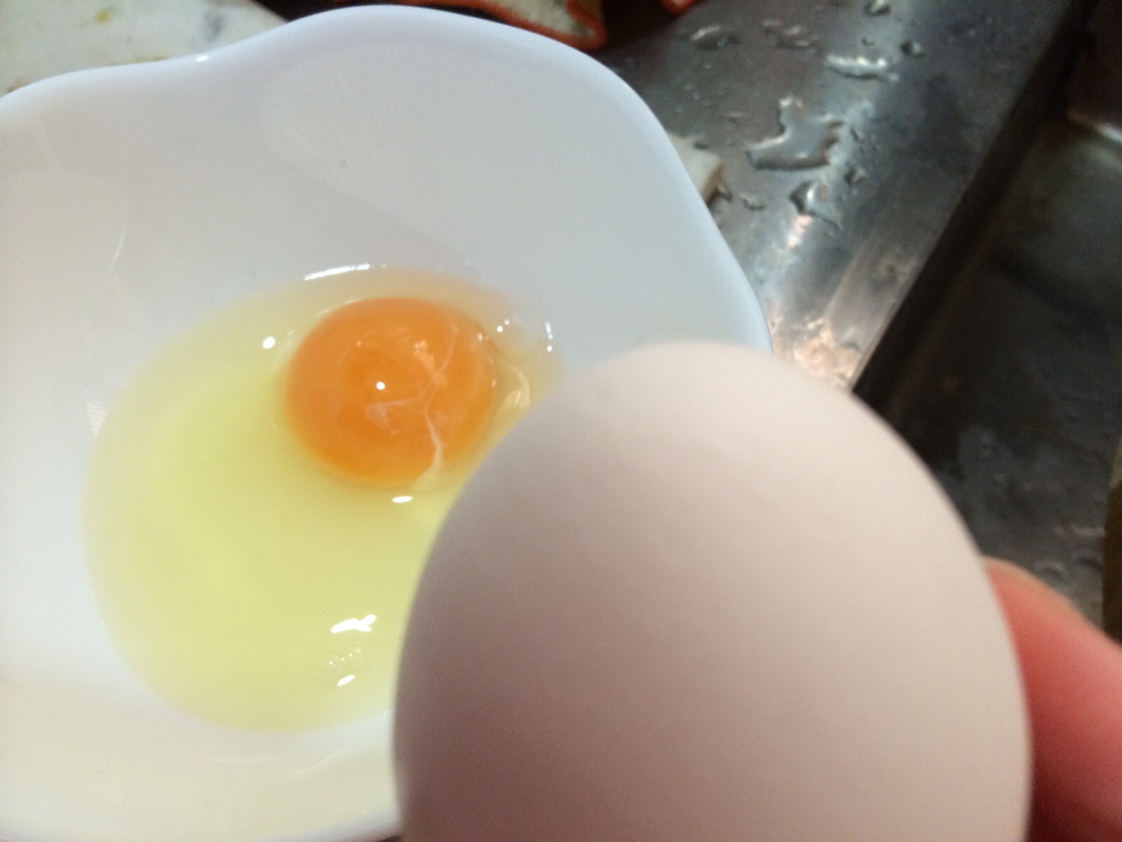 小代さんにいただいた卵を2個、使います。 ミカエル