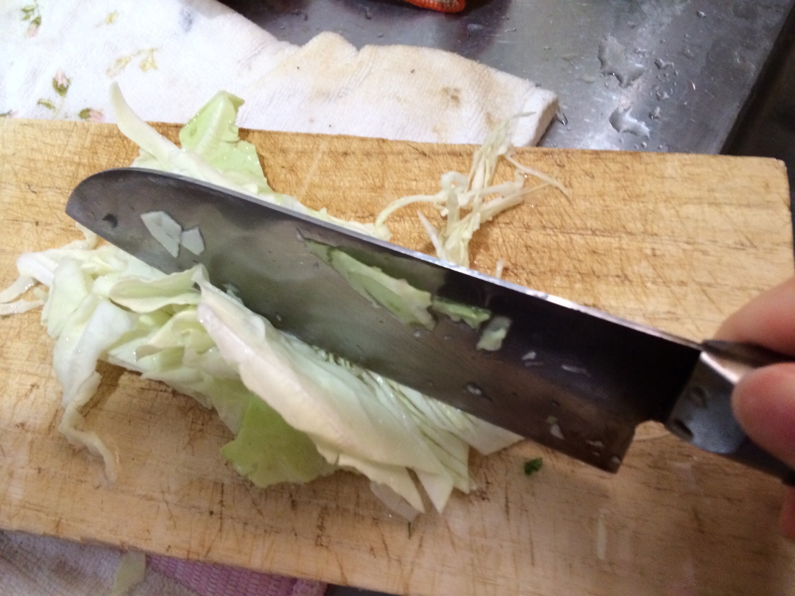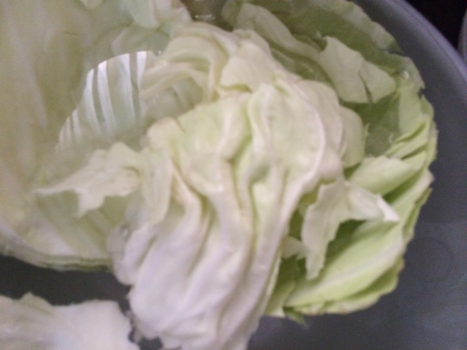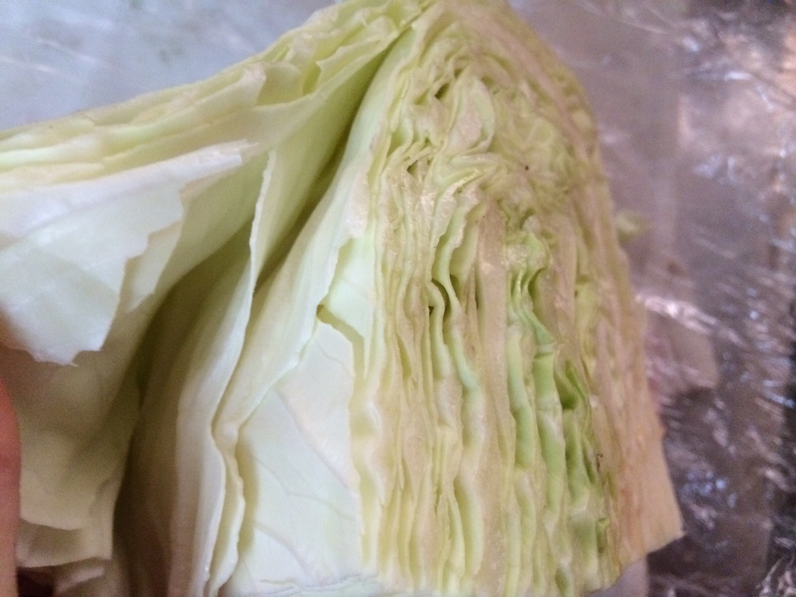 ご飯を作ります。まずは、小代さんにいただいたキャベツ。 早く食べるように、と、虫が食べてると、小代さんに言われました。 ミカエル