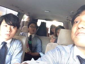 聖会の時間まで休憩中。 車の中はクーラーですずし〜!!