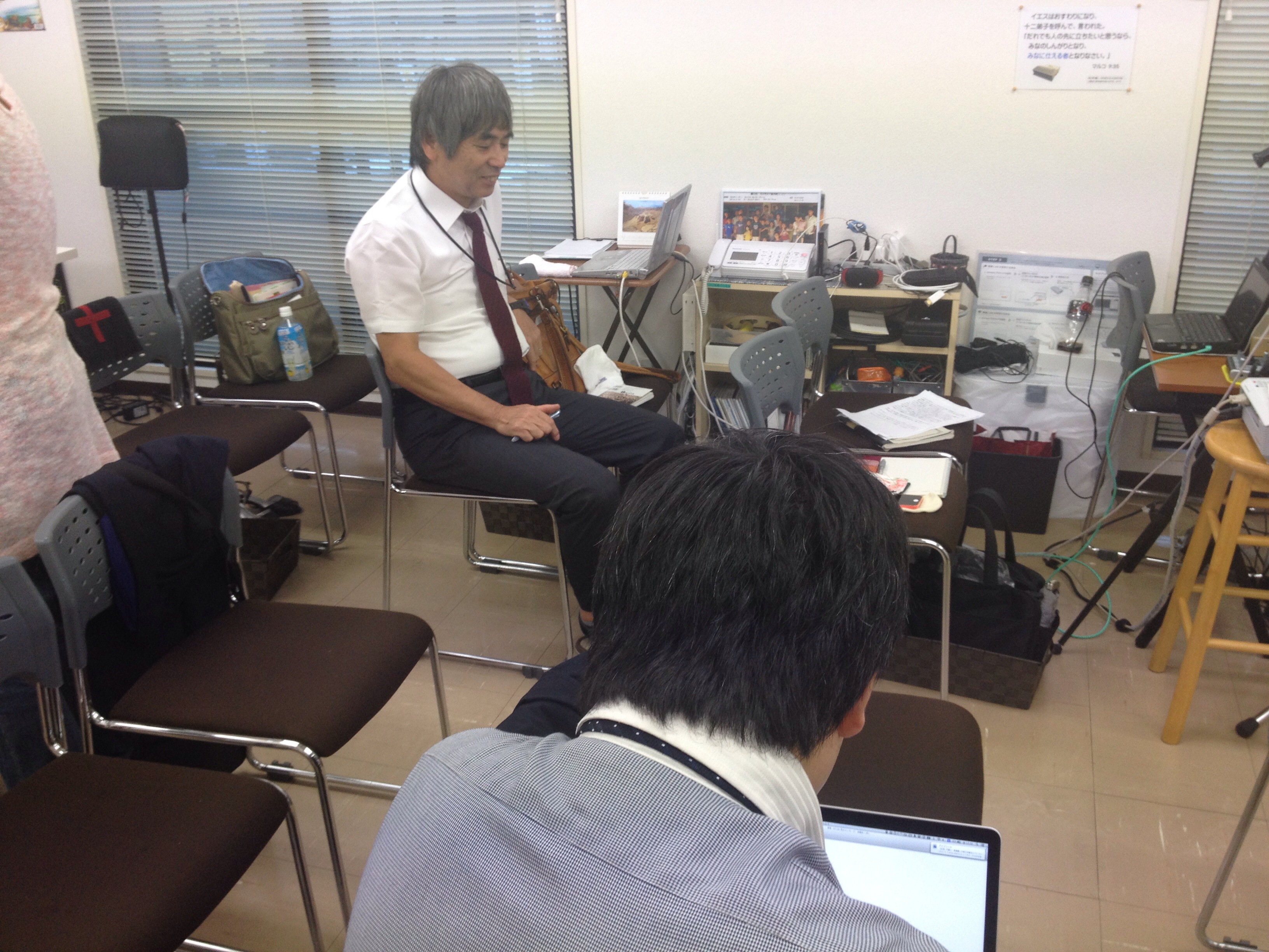 会場に到着しました! 中村さんとサムエルさん、マックについてお話中です。