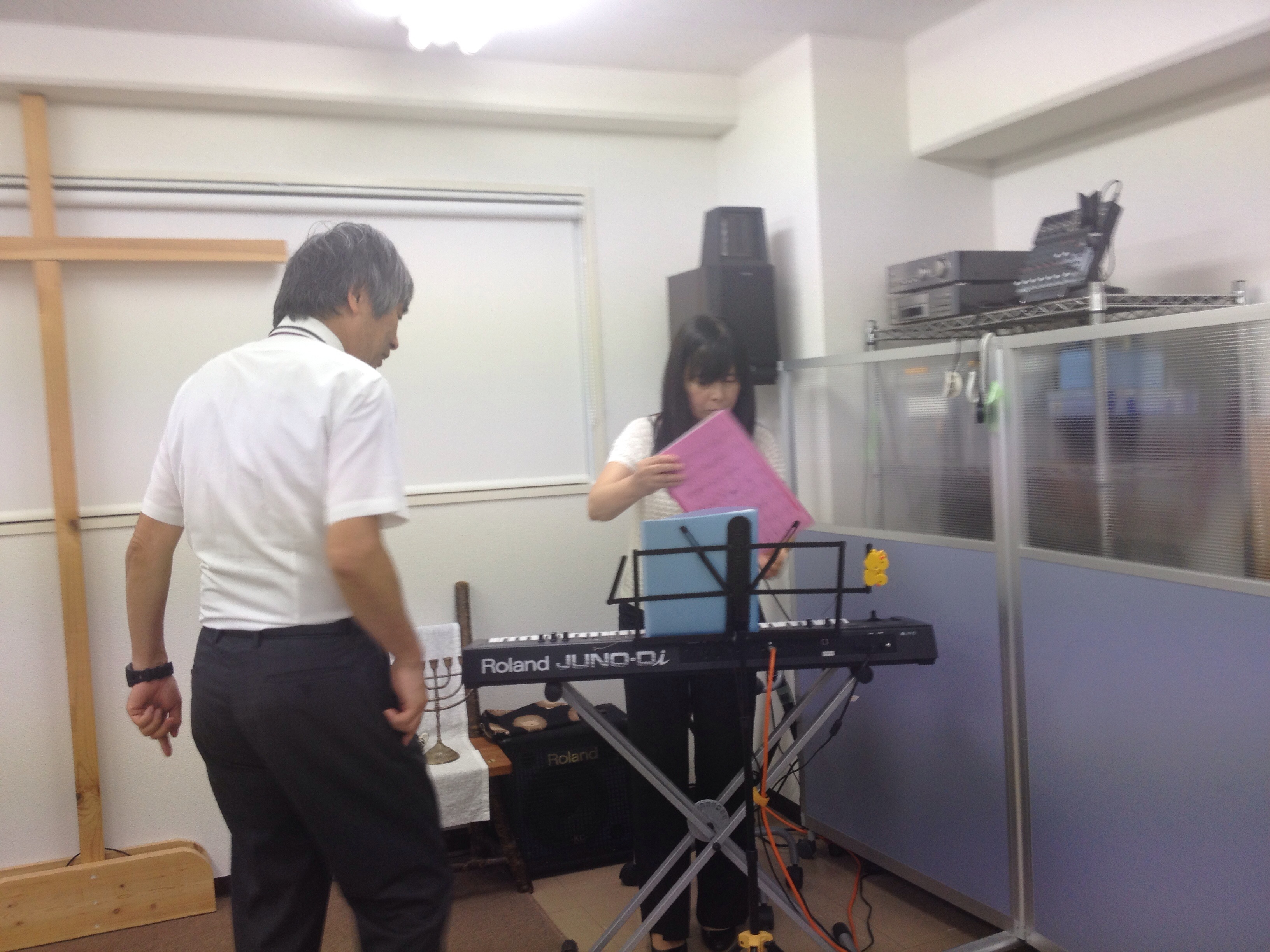 キーボードの調整中の萱野さん、中村さんに聞いているみたいです。