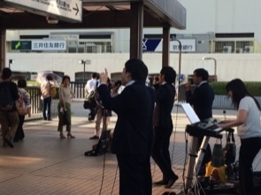 多くの方が立ち止まり、聞いておられます。 今日もファンのaさんが応援に来てくれました。船橋D