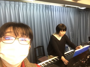 ミッション事務局では、アフリカ部門の祈祷会が始まりました。お二人とも、それぞれのお仕事が終わったあと、駆けつけています。