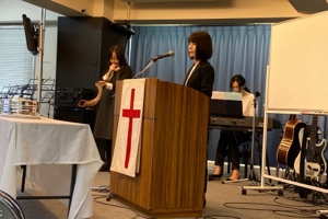 会衆賛美をしている清水さん!