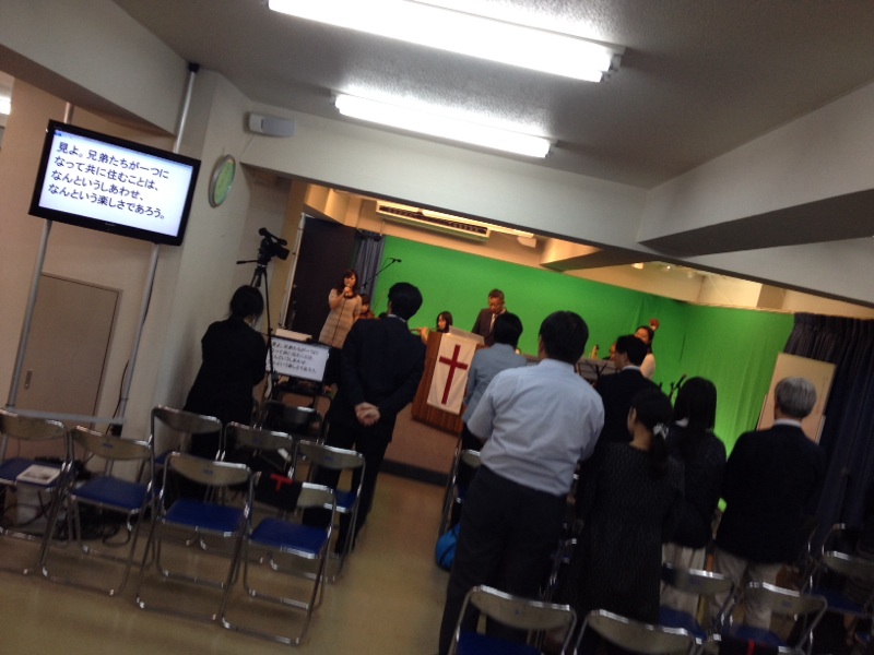 第七礼拝スタート! 新曲を覚えるよう二回ずつ歌うそうです。 東京アンテオケ