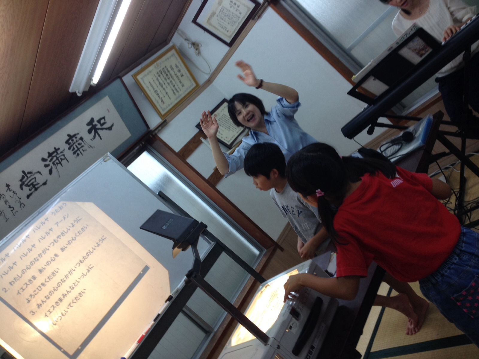 新曲です。 みんなで練習しつつ賛美。 真剣です。