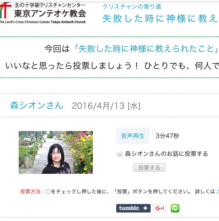 聞きながら行きます。今日はバックのお花も春っぽい森シオンさんのお話です。 福岡教会 Sada