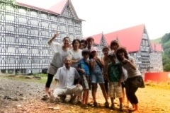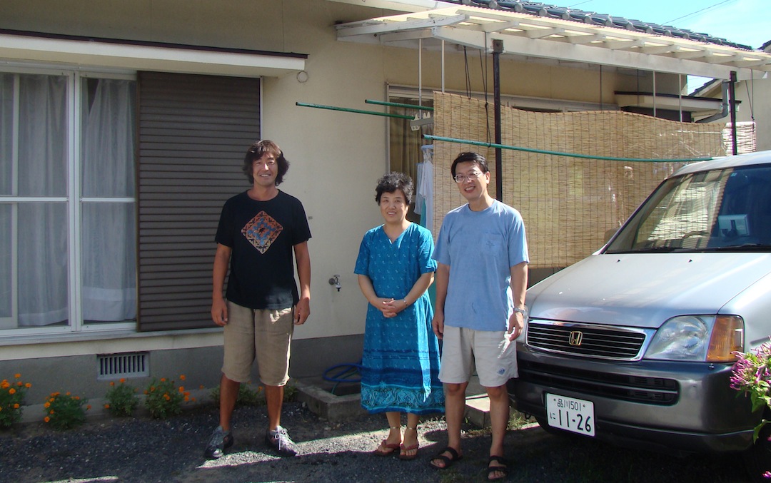 収録風景というブログなのに過去ネタばかりですみません。今回のお題は8月8日にアップ済みですのでそちらをどーぞ。こちらは「生涯3番目に感動したこと」体験から約2ヶ月後の私の写真です。鹿児島です。当時の大内牧師宅前です。フェリーで沖縄へ行く前、そして帰ってきてからも大変にお世話になりました。庭で採れたての野菜を使った料理、美味しゅうございました。私の生涯の感動、上位にランクインしております♪