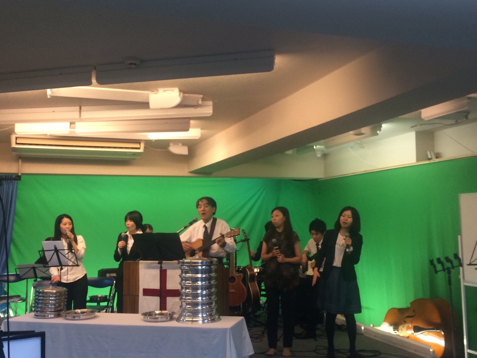 東京アンテオケ教会の牧師である秋元さんが導かれる賛美の時です。