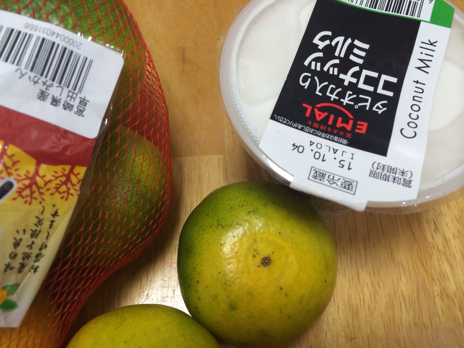 今日は頑張ったので、自分にご褒美! ココナッツミルクとみかん! 神様、感謝します! Gifts Kayano