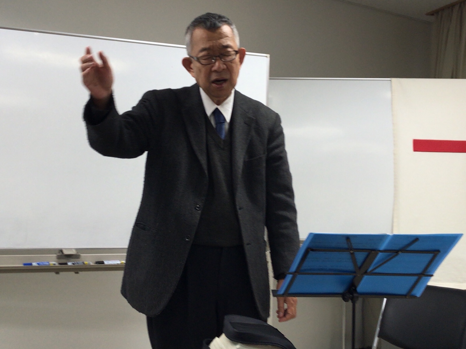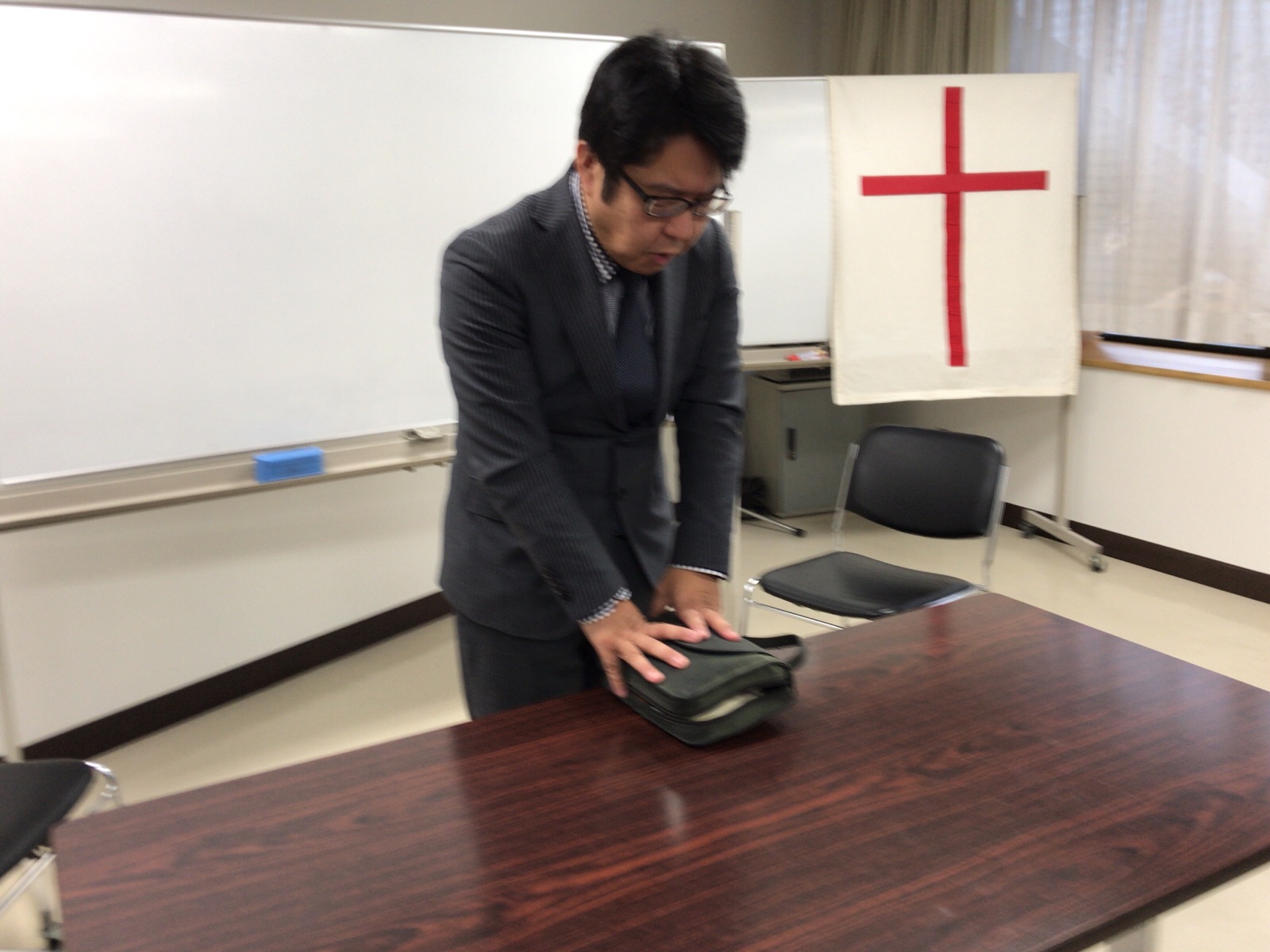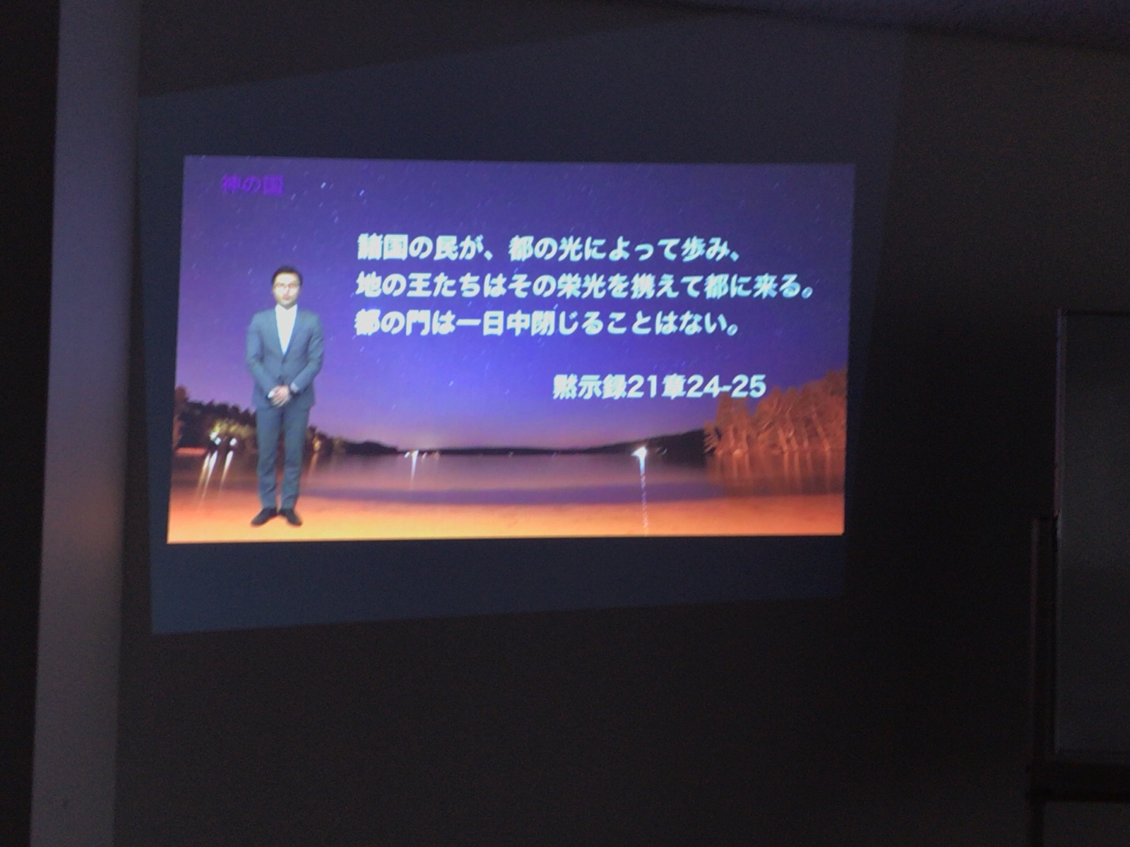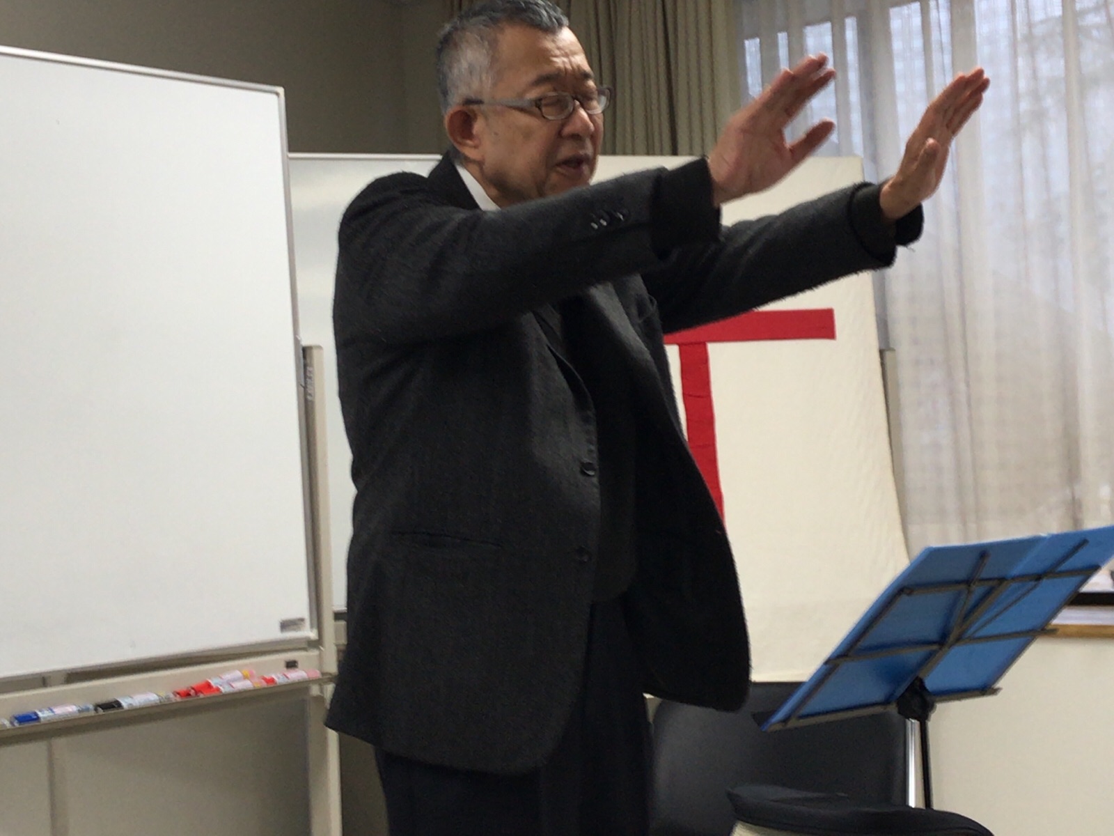 旧約聖書「イザヤ書14章24節」からメッセージを取り次ぐ掛本さん。 –sugisawa