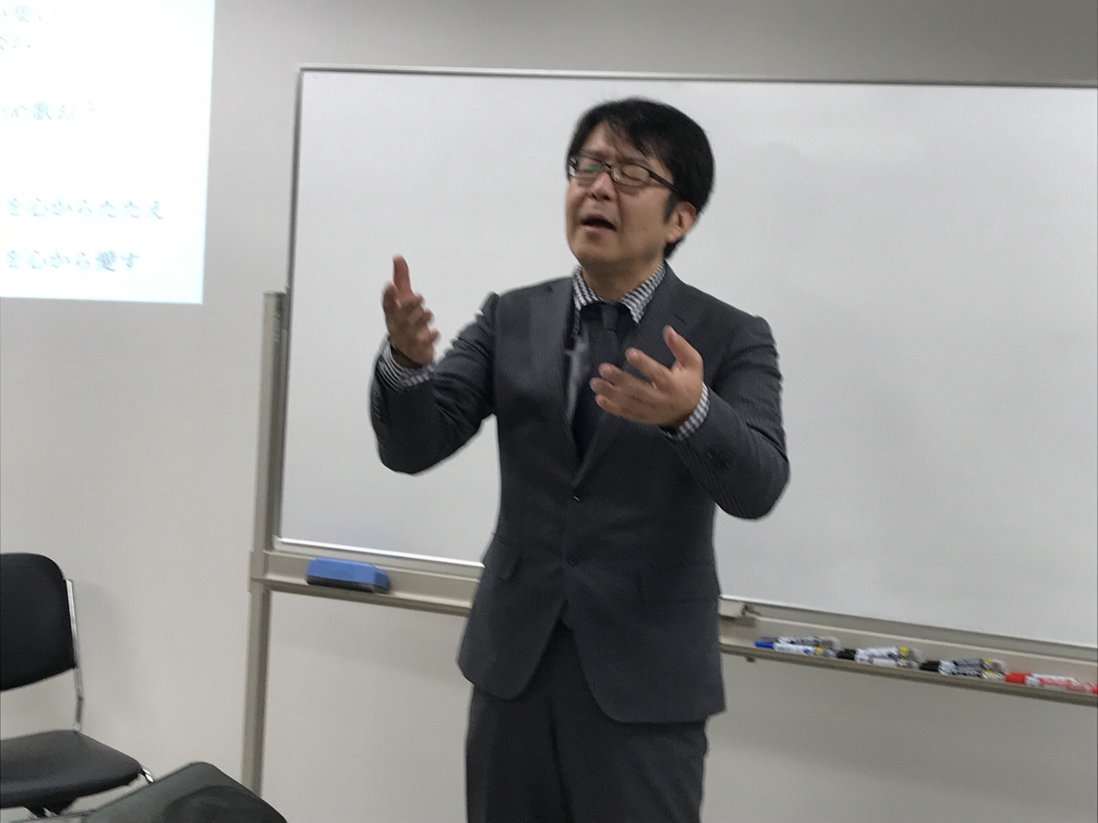 カリスマ(9つの御霊の賜物)を用いる上で重要な内容を教える主講師の秋元さん。 –sugisawa