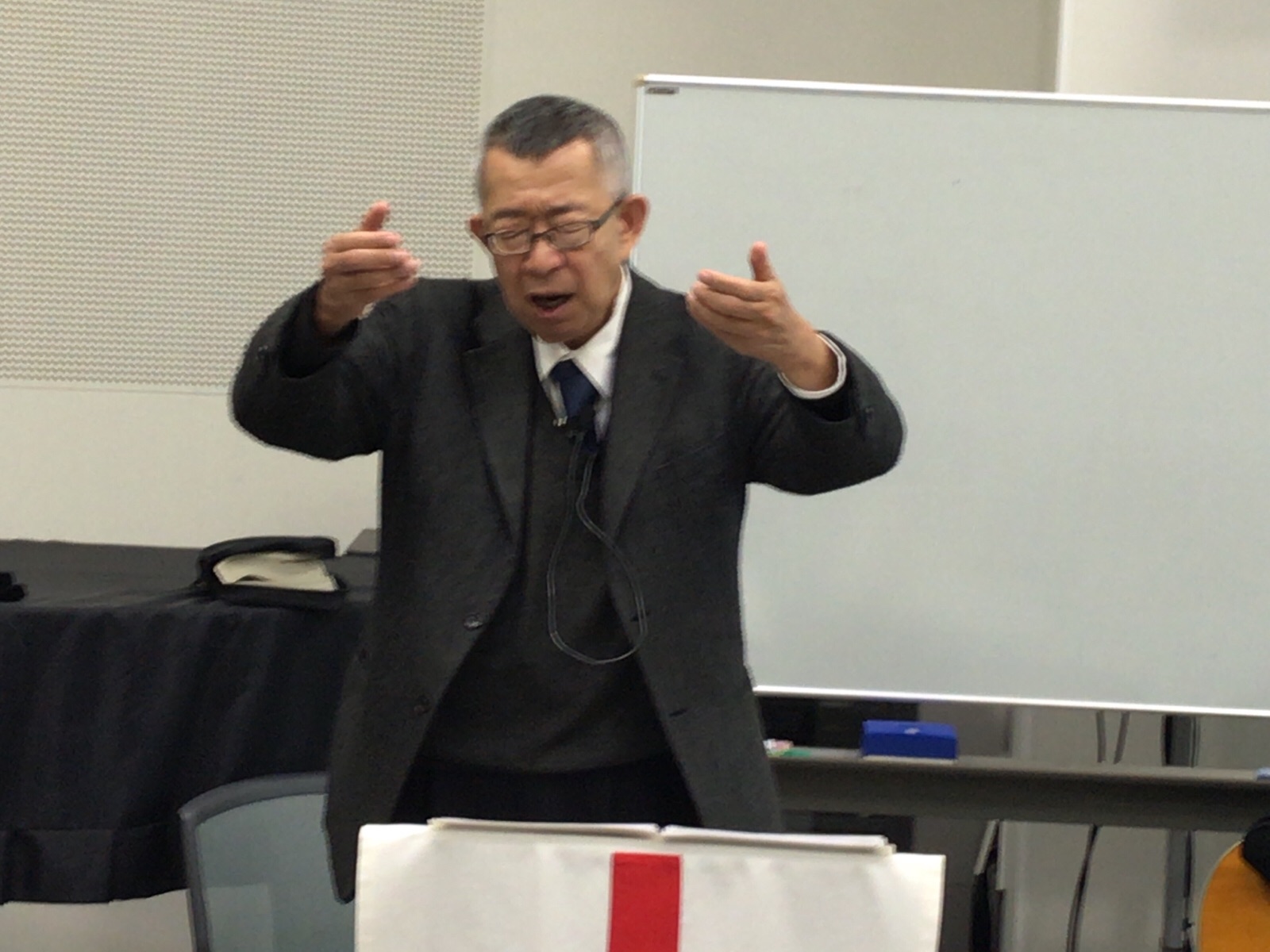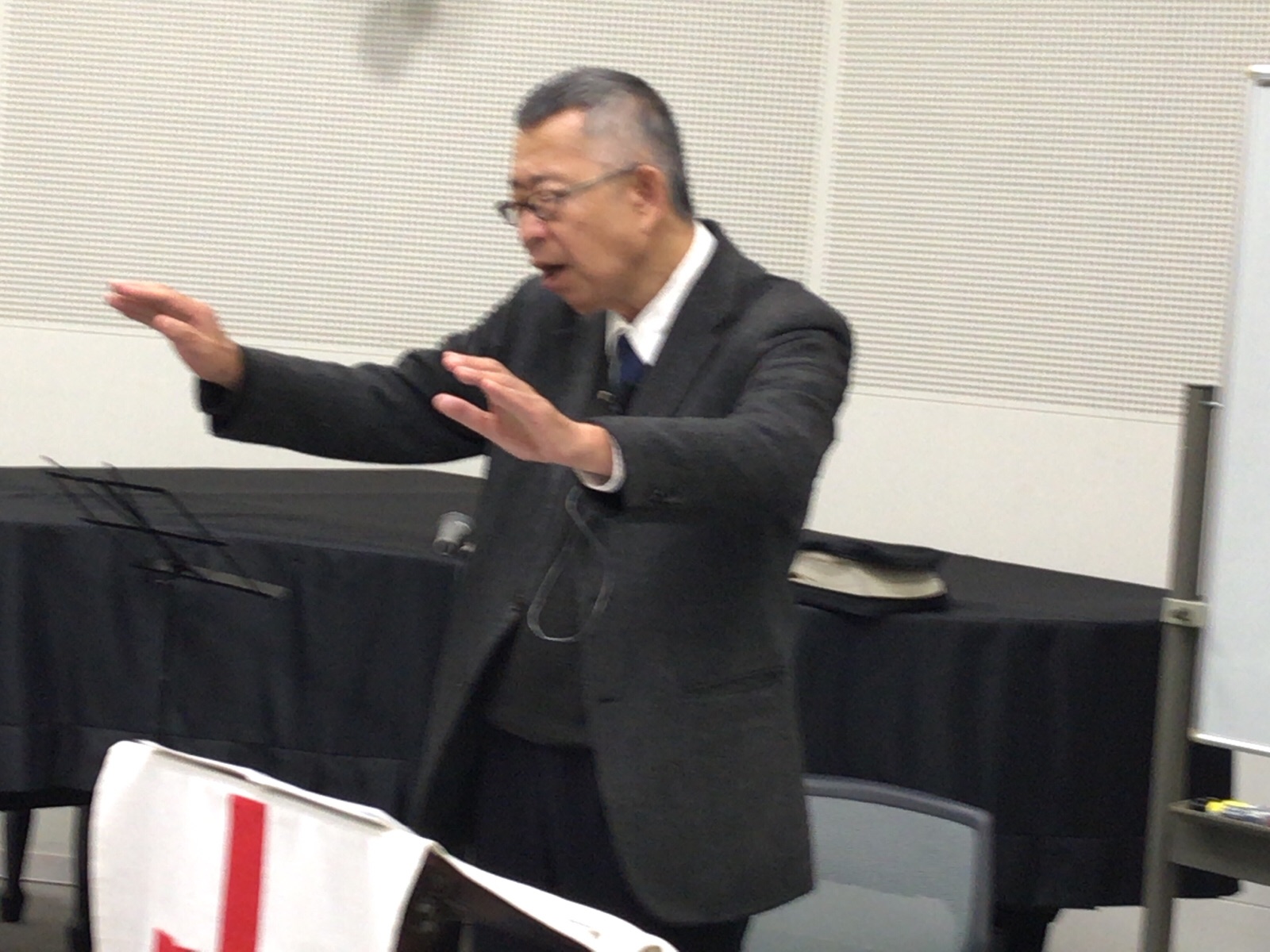 会衆賛美を導く主講師の秋元さん。