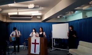1時間のお祈りのあとは、あかし(体験談を語る)タイムでした! トップバッターは、いとうくん。
