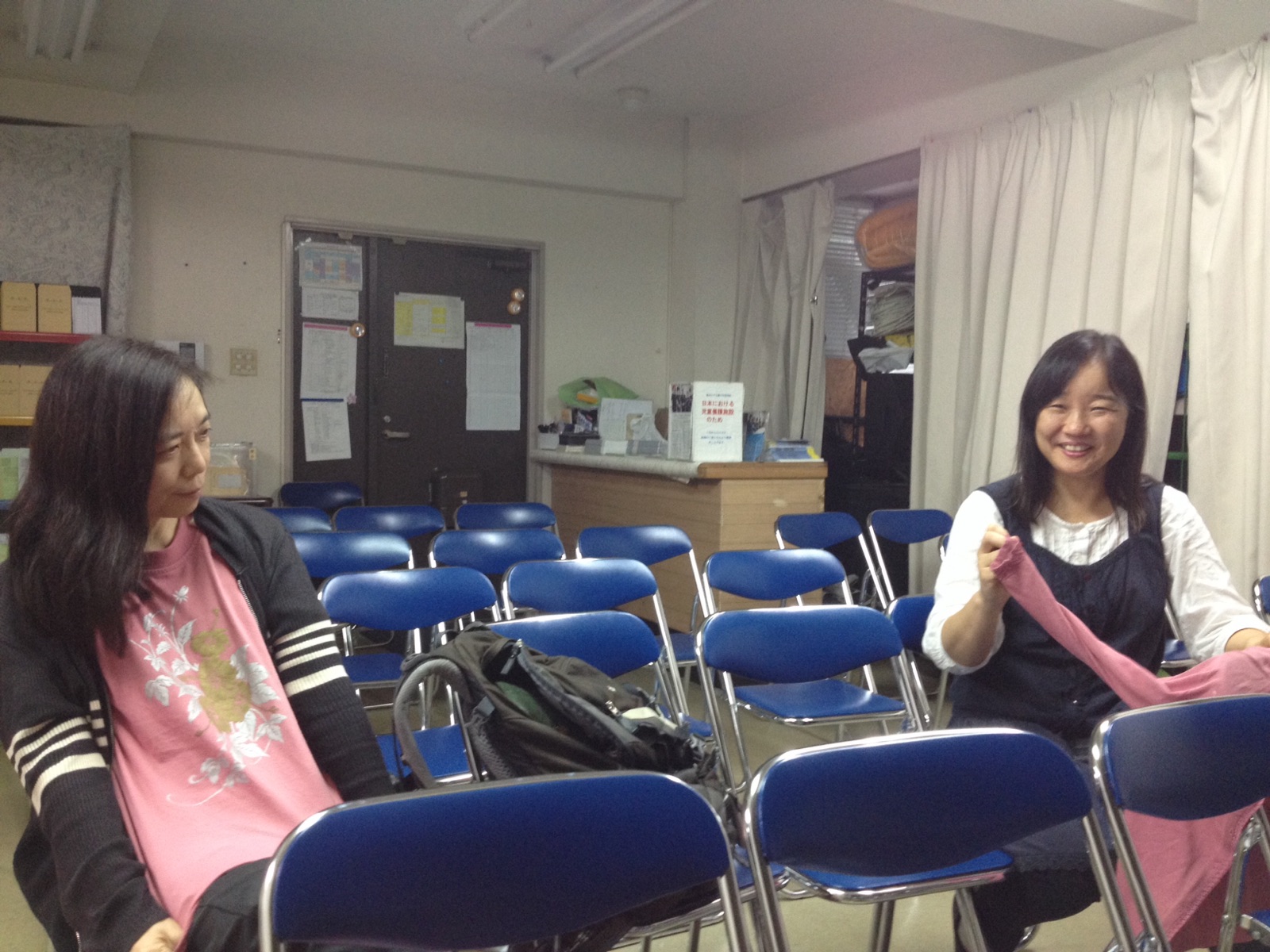 会堂では早天が終わりました。 りょう子さんと清水さん、同じピンクです。 kato