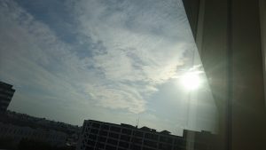 七色にキラキラ光る彩雲を発見! しかしiPhone取りに、萱野さん呼びに行っている間に消えました〜。 kato