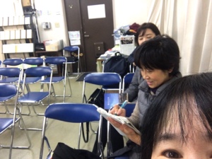 満月祈祷会の出席メンバーを、オジロさんがノートにつけてます。