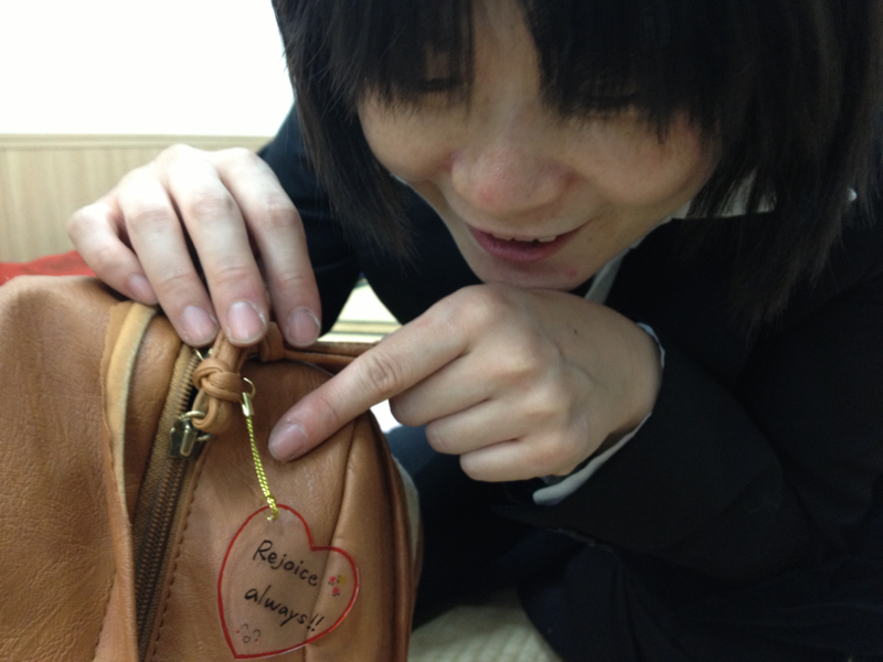 お母さんへプレゼント用のプラカードが、愛ちゃんのリュックに付いてました!