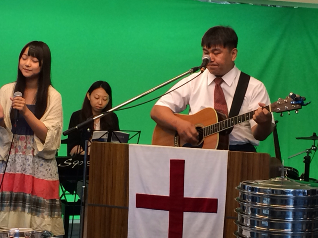 匹田牧師が前半賛美を導いています!メンバーの何人かもいますね! しるしと不思議