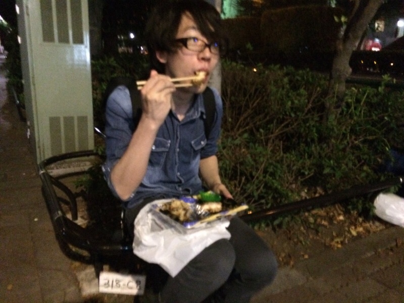 これから会堂で練習です。 会堂の前まで来ると、歩道の脇に座りお弁当を食べている人が‥ 拓也君でした。 Gospel Seed ヨセフ
