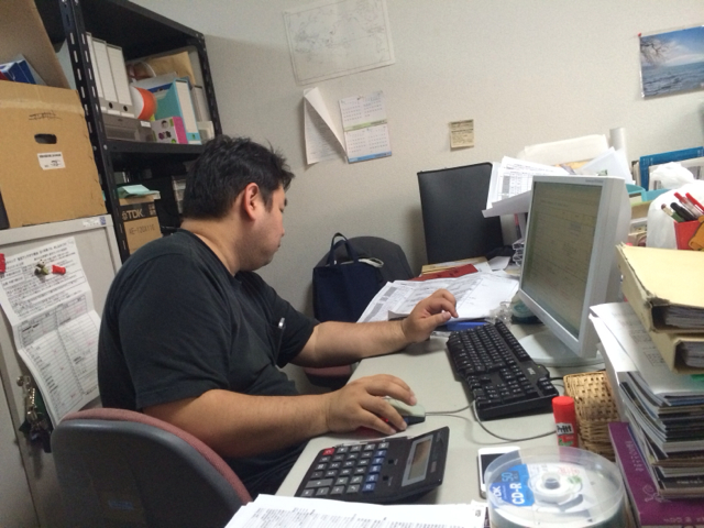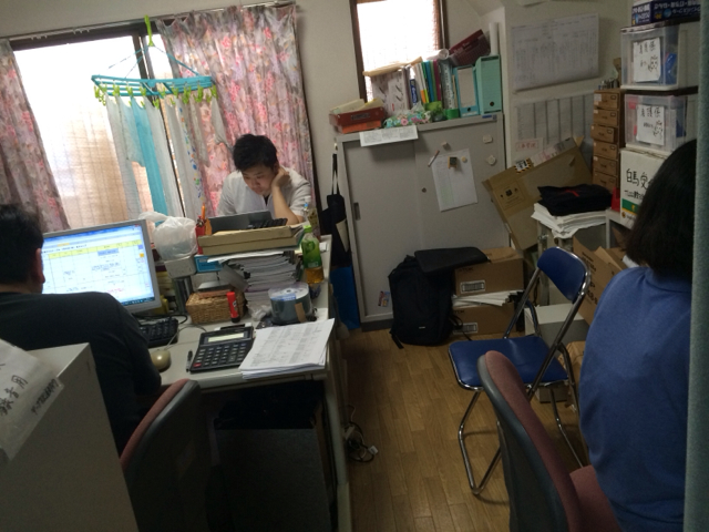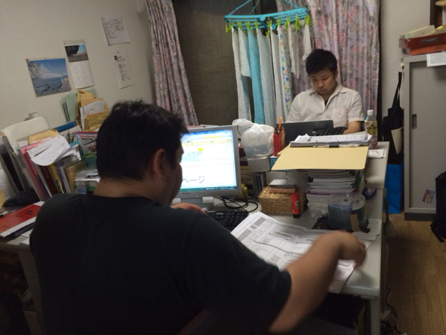 まだまだ続く白馬委員会! キブツの真境名さんも、Giftsのサムエルさんも頑張ってます。 教会事務所にて