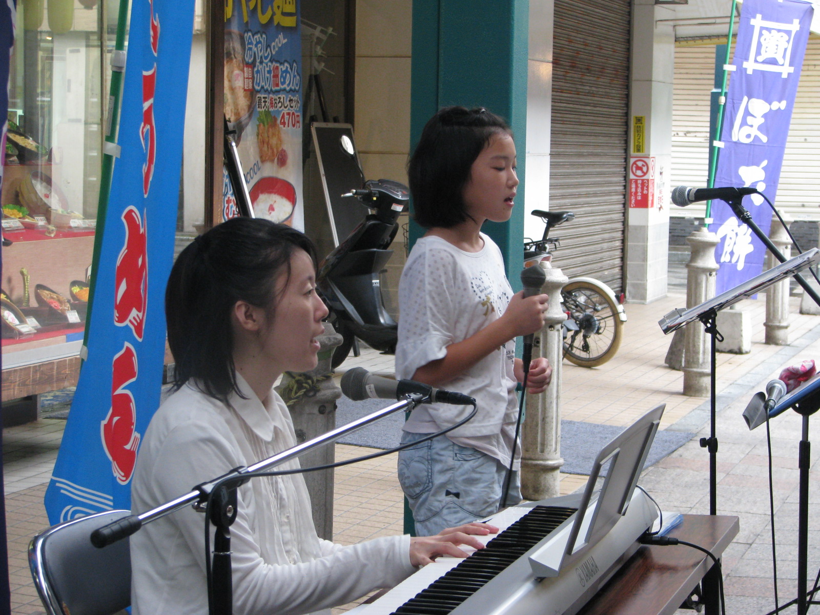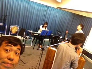 それで、礼拝場所の前で「路上コンサート」をしました。