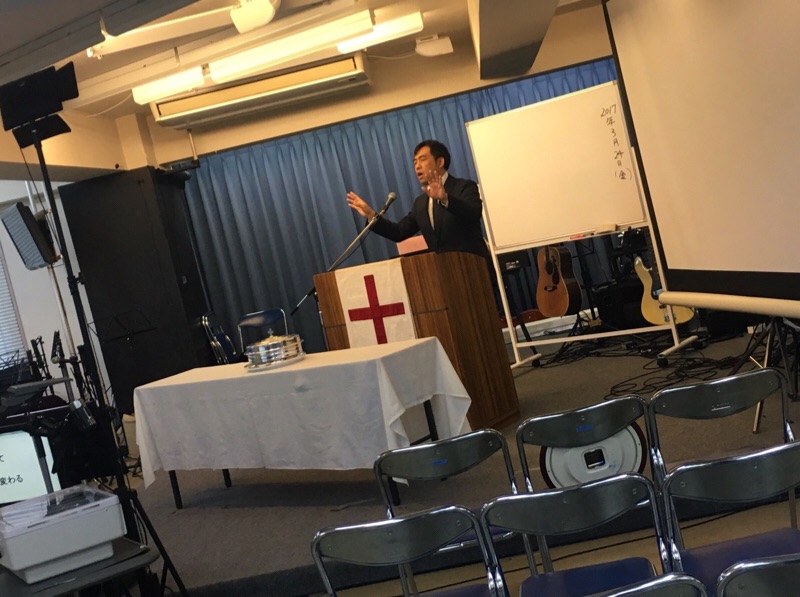 金曜礼拝の清水さんがお休みなので、藤田くんが代行で角笛を吹いてます。