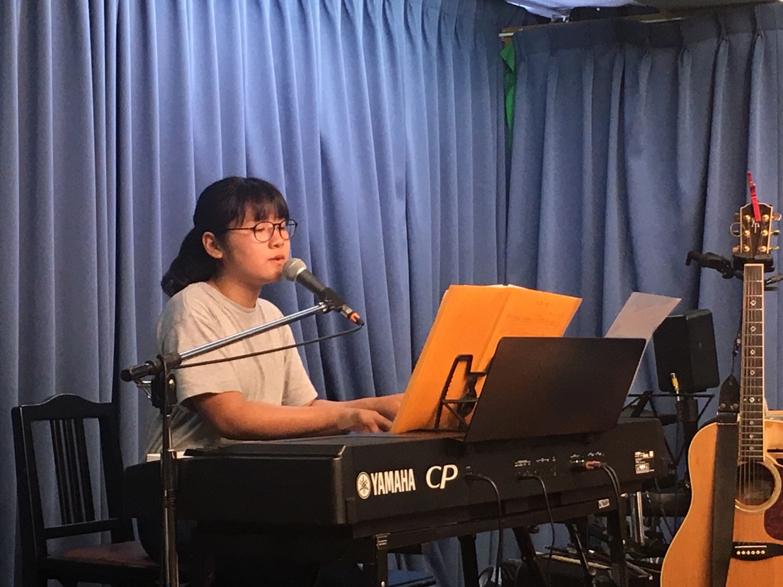 (写真は、水曜祈祷会の賛美のコーラスに立つ、子供たち)