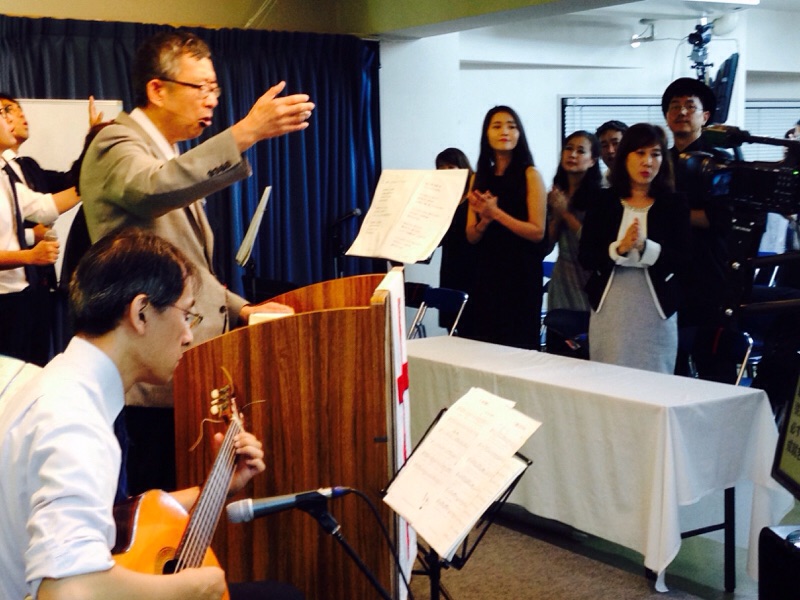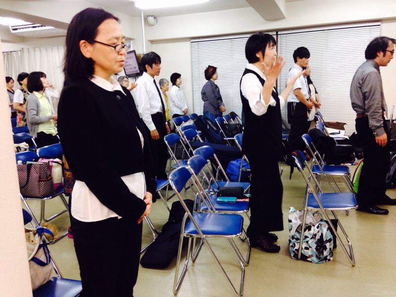 ハン代表と俳優の皆様も一緒に礼拝賛美の時を持っています。