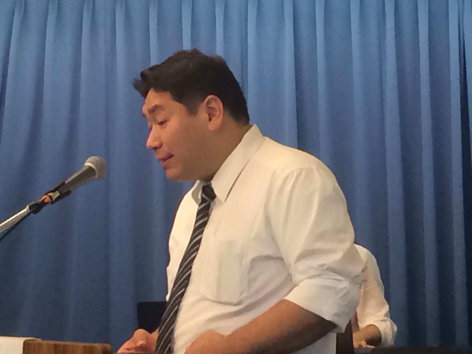 真境名さん、カンボジアチームについての証をしています。