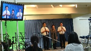 いきなり、まさ子さんの両サイドに、2名の男性が登場! 「○○の秋」のベスト7を紹介! そして、結論は。。。、「ゴスペルの集いの秋〜〜〜♪♪」 Megumi