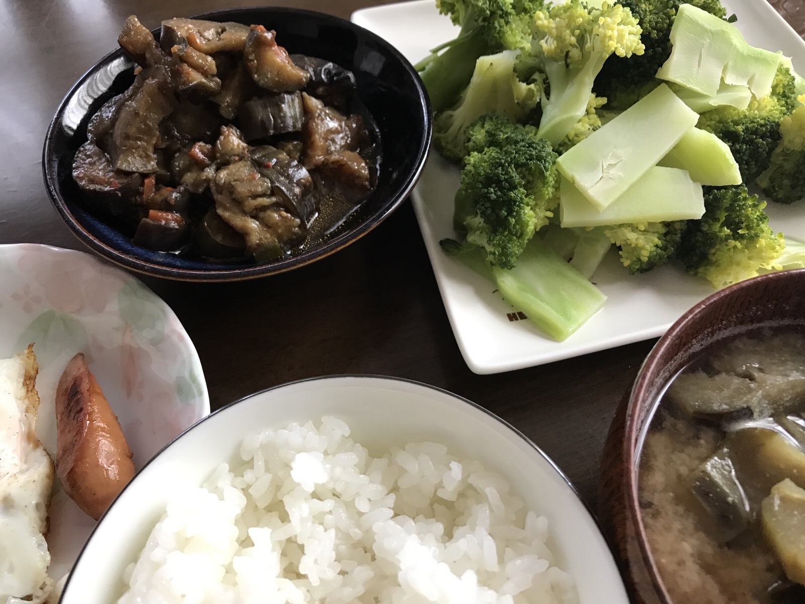 茄子がたくさんあったので… 茄子の味噌炒めと、茄子のお味噌汁と… 大好きなブロッコリーと。 amagai