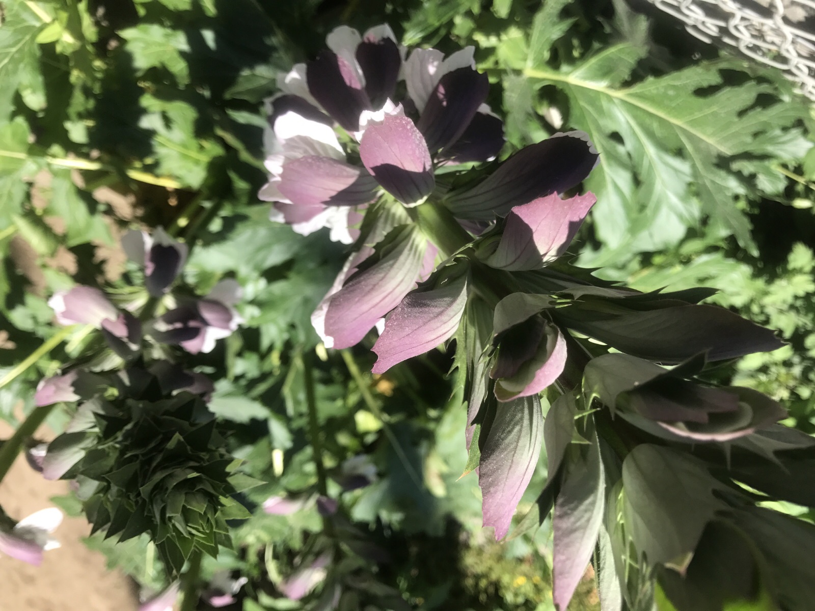 校庭のはな。ギリシャ国花だそうてす、アカンサス。ちなみに、触ったらチクっとさされました。だから、アカンサスじゃないてす