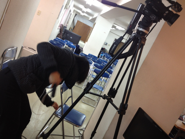 配信(オンライン会員限定)のためカメラ三脚をセッティングしているのは愛ちゃん。