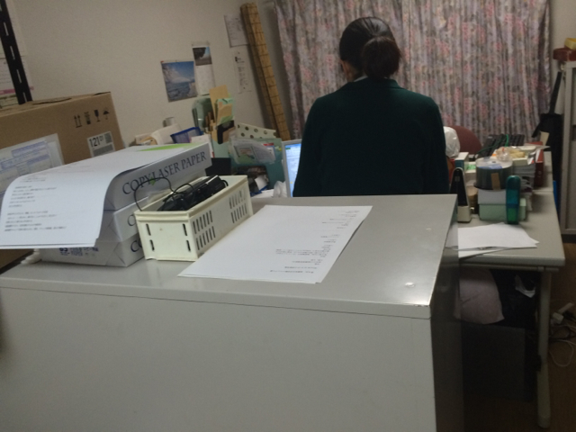 教会事務所です。 加藤さんは、感謝会の資料の準備をまだやってます。 Kayano