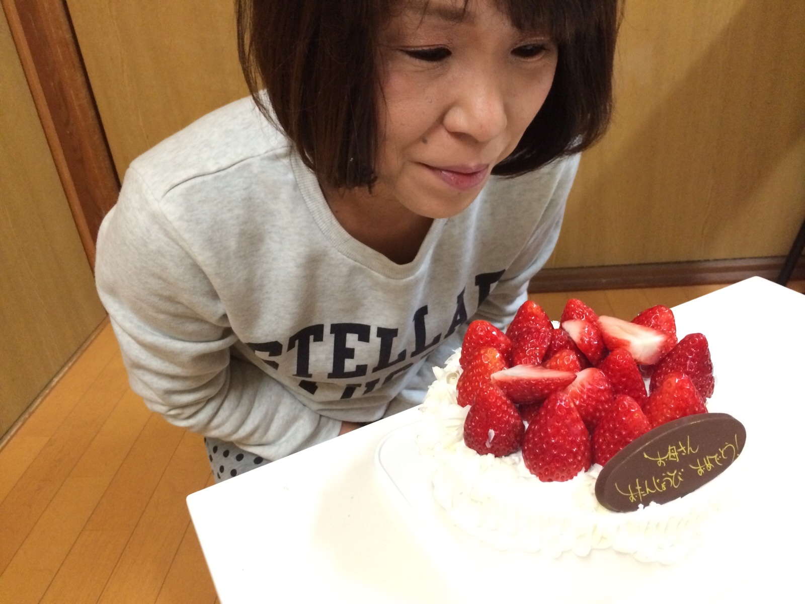 お母さんにケーキをプレゼント!喜んでくれました(*^^*) みんなでハッピーバースデーと言って、ケーキをいただきます♡ しるしと不思議