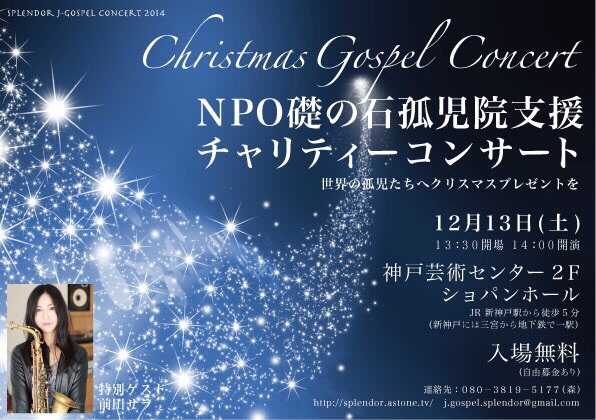 スプレンダーのjohnです。 来週のクリスマスコンサートのチラシです。厚かましくもUPさせていただきました。神戸、関西からだけてなく日本中からのご参加お待ちしています。(^○^)