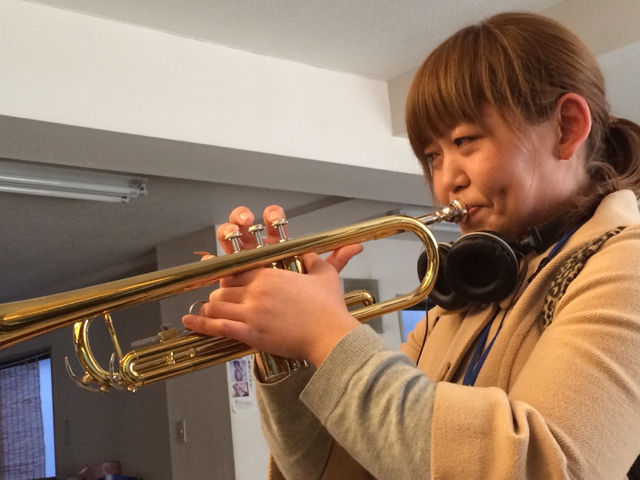 会堂に来たら、滝田由美ちゃんがトランペットの練習してました。 Gifts Kayano