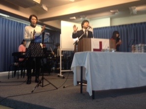 第二礼拝スタート! 賛美リーダーはサムエルさんです。