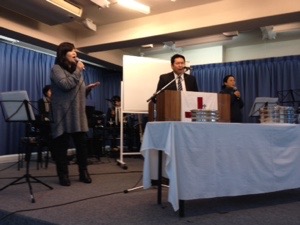 メッセージ前に賛美をしていきます。 ラスポーザのお二人が賛美を導きます。