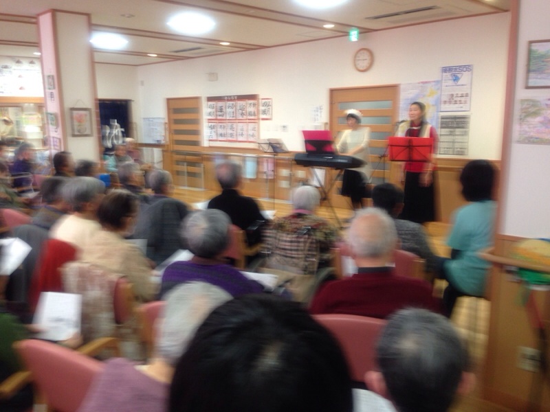 リハビリテーション施設から、デーサービス施設に移動して、続いてコンサートです。