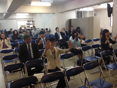 今から全員で、問題に対して笑顔で喜びましょう!写真撮りますよ!