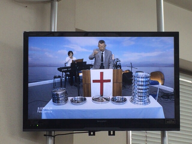 第一礼拝が始まりました! 賛美リーダーは山川さんです。