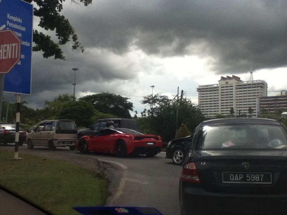 いつか忘れましたが、1週間以内のある日、赤いスポーツカーを発見。周りの車の人びとの視線を一身に浴びながら、走っていました。私などは、車に特に興味がないので、普段気づきもしないのですが、クチンの人びとはこれが大体いくらするかとか、知っているので窓から顔出してみている男の子とか、いました。私も写真を撮ったりしていますし。(最近クチンの世において、これが価値のあるものだということがわかってきたので)