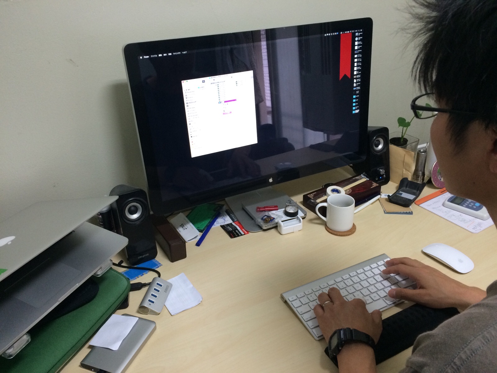 コンピューターを使って、いっぺんにアップします。