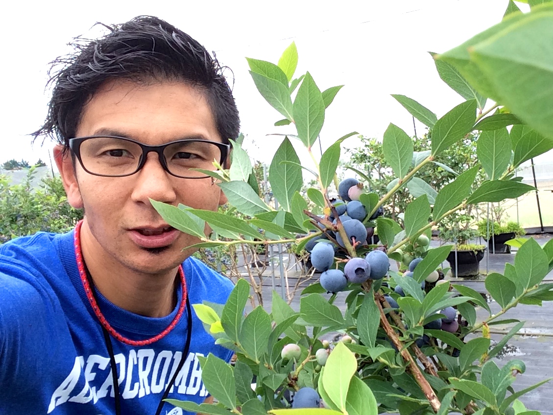 今日も朝からデスクワーク、気分転換にお客さんとまじってブルーベリー狩りしました(笑)