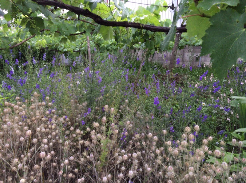 夕方、小学校時代の通学路をなつかしく歩いていると、ぶどうの実が青くついていました♪ やまなか