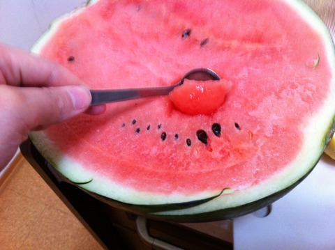 私の好物は、すいかです。私が実家に帰る時、父が必ずすいかを買っといてくれます。