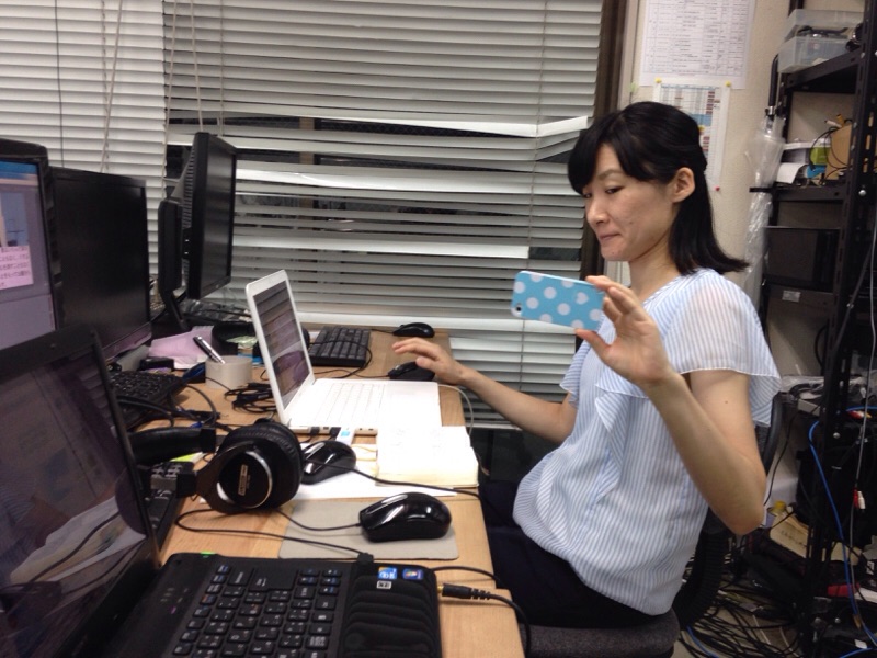 右手でプロジェクター、左手でiPhoneの器用なしおちゃん‼︎ oji